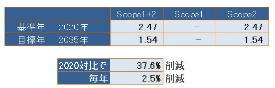 温室効果ガス排出量の削減年次目標(Scope1+2)